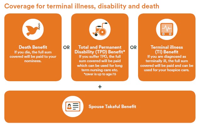 Jika anda meninggal, pasangan anda layak dapat sijil percuma RM100,000 untuk 2 tahun.